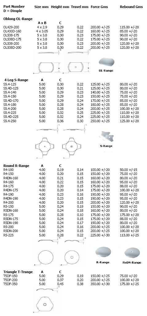 A new range of Clik Domes designed for use where small area contacts are required, or devices that can not accomodate traditional switching methods.