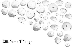 We are also able to offer a full range of round domes R-Range and T-Range from standard tooling. These include dimple and non dimple types, with and without feet. Sizes range from 5mm up to 12mm and a full range of actuation pressures.