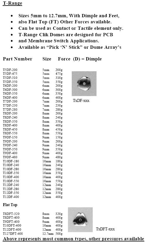 Product Availability T-Range ( Snap Domes ) Dimple with Feet